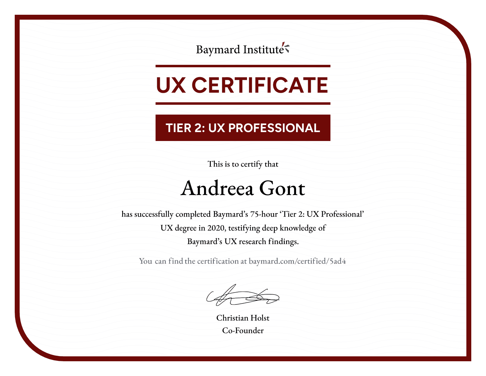 Baymard certified as E-commerce UX Professional.