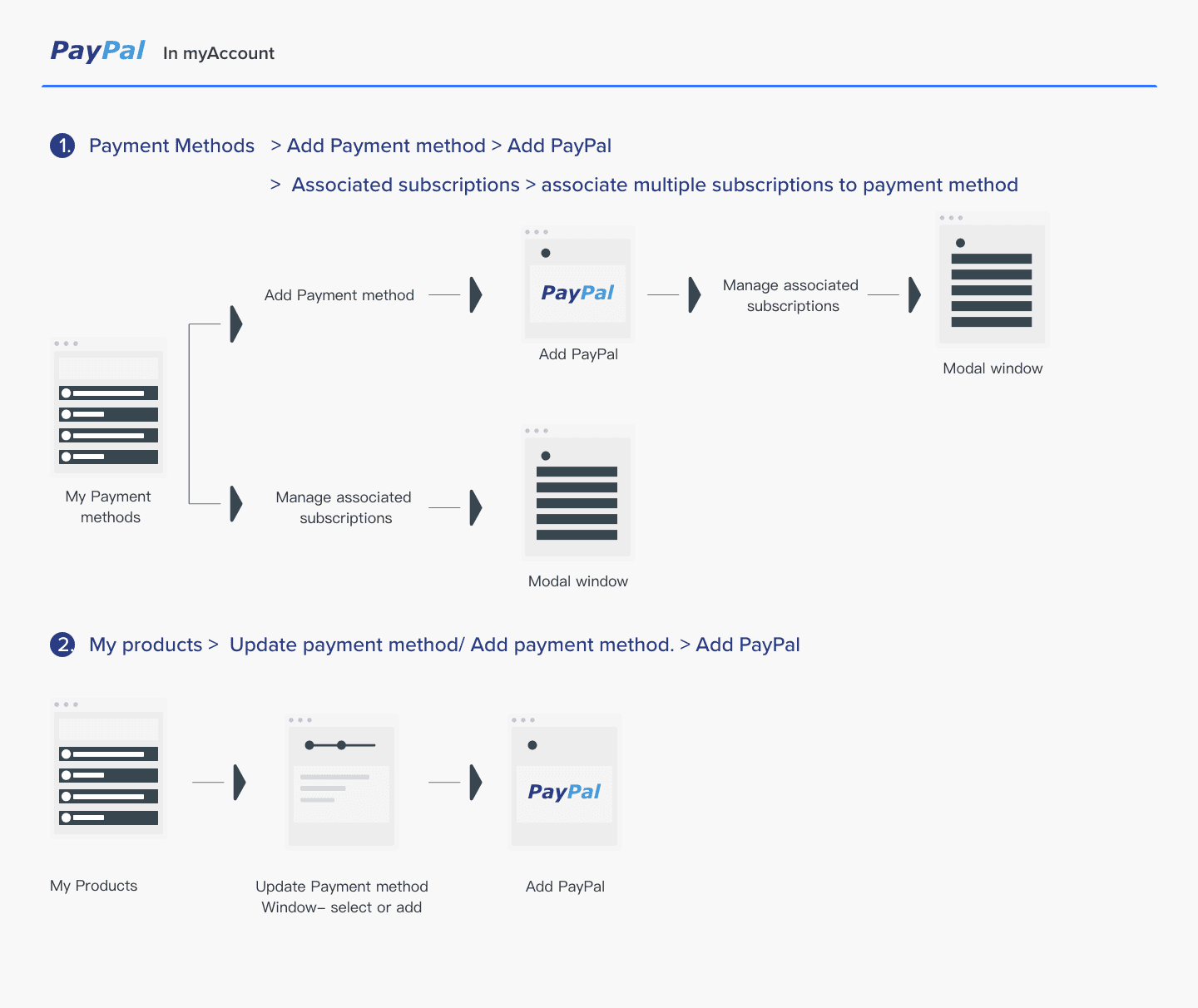 Redefining the architecture around what users actually needed to do was my main objective in this phase. After defining jobs-to-be-done, I systematically mapped every key flow, login, payment method management, subscription management. All documented diagrams as before/after making all the structural improvement visible and reviewable by the Product team.